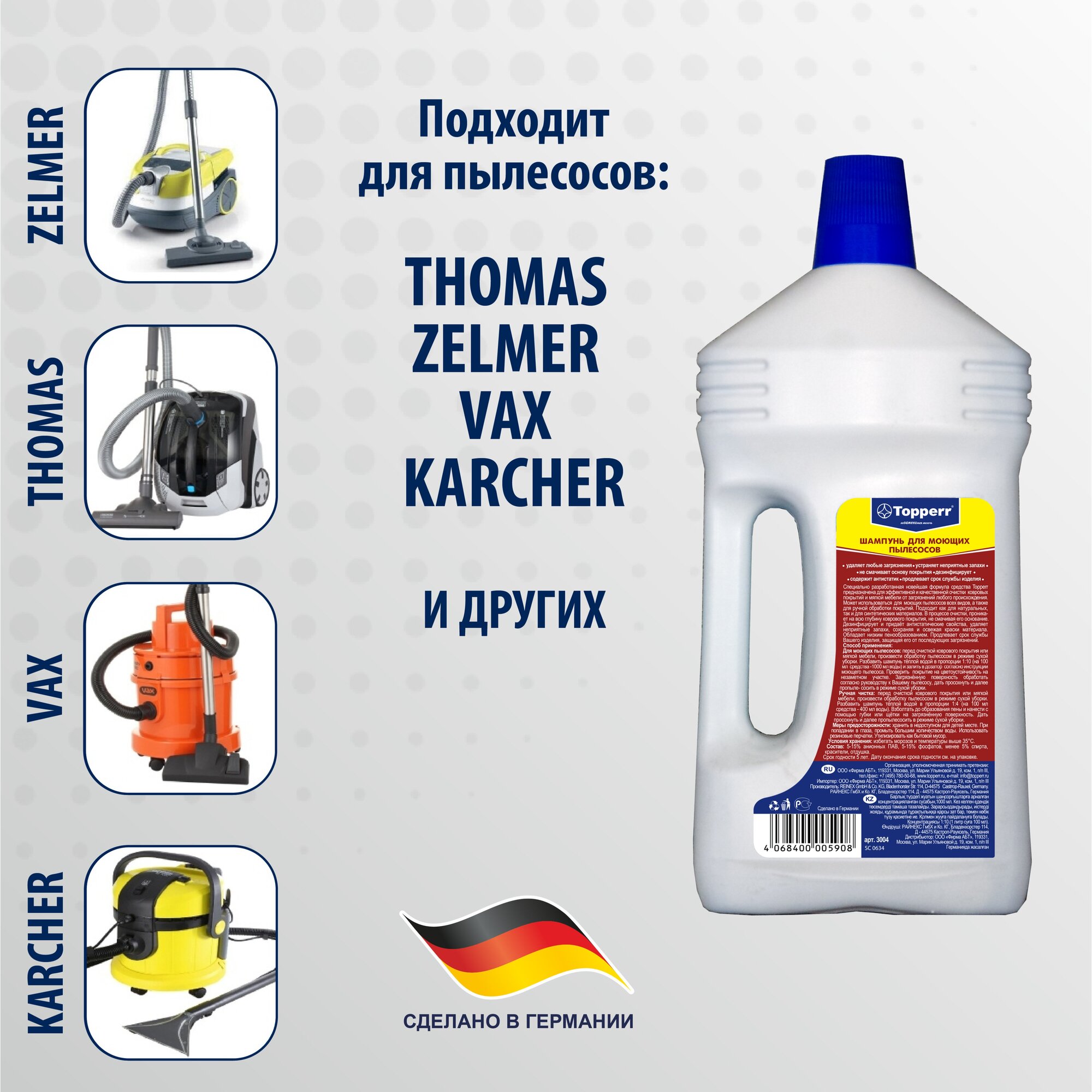 Шампунь для моющих пылесосов Topperr 3004 1000мл, Испания