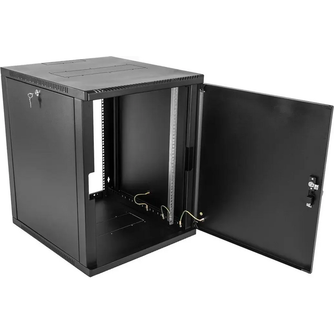 Шкаф коммутационный ЦМО ШРН-9.350.1-9005 настенный 9U 600x350мм пер.дв.стал.лист 200кг черный 300мм 180град. 479мм IP20 металл