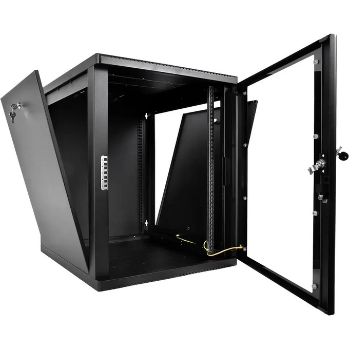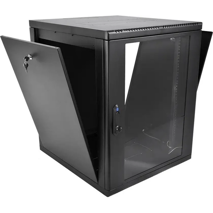 Шкаф коммутационный ЦМО ШРН-М-12.500-9005 настенный 12U 600x520мм пер.дв.стекл 130кг черный 456мм 21.6кг 180град. 610мм