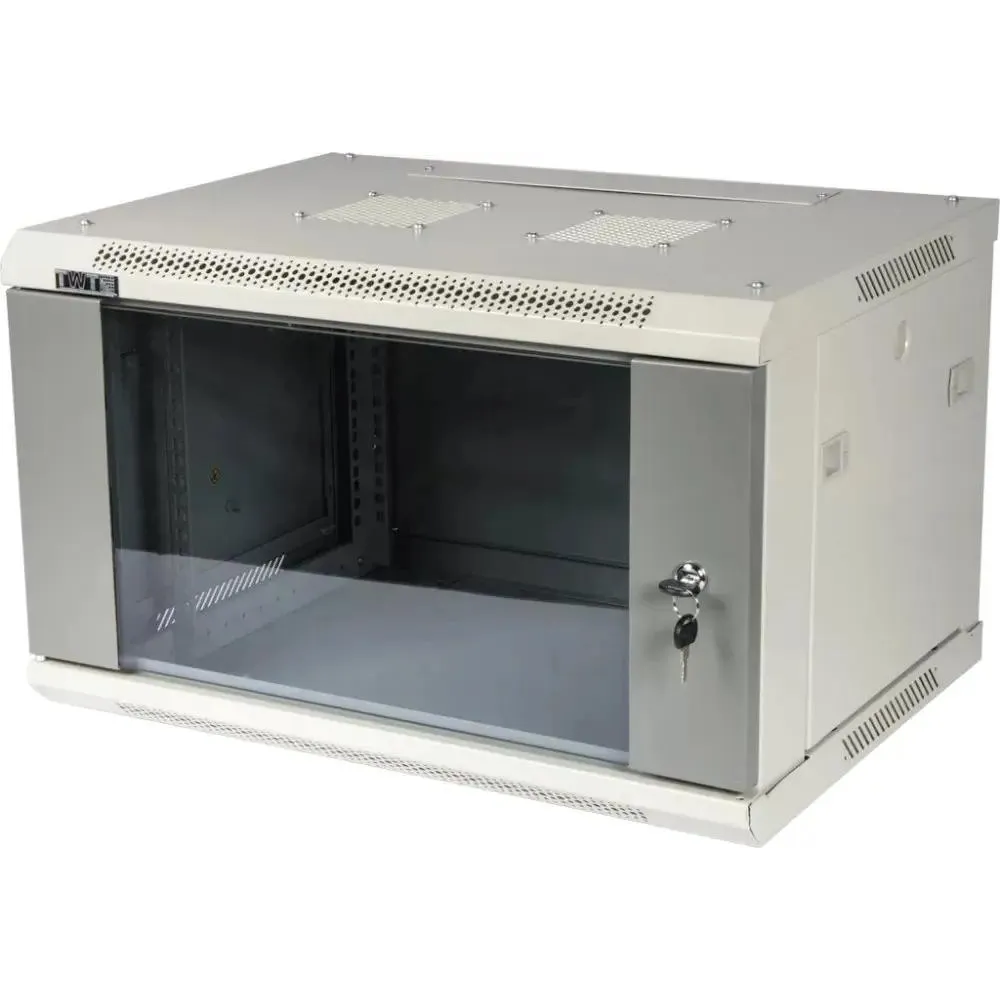 Шкаф коммутационный Lanmaster (TWT-CBWPG-12U-6X6-GY) настенный 12U 600x600мм пер.дв.стекл 60кг серый