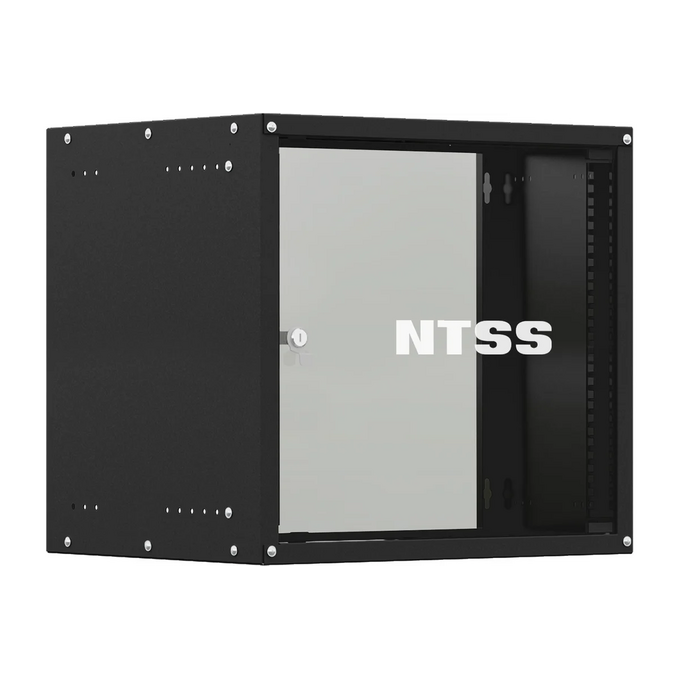 Шкаф коммутационный NTSS NTSS-W6U6060GS-BL настенный 6U 570x600мм пер.дв.стекл 60кг черный 500мм 18.8кг 220град. 370мм IP20 сталь