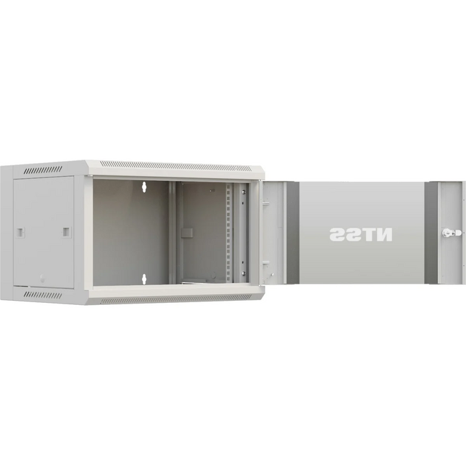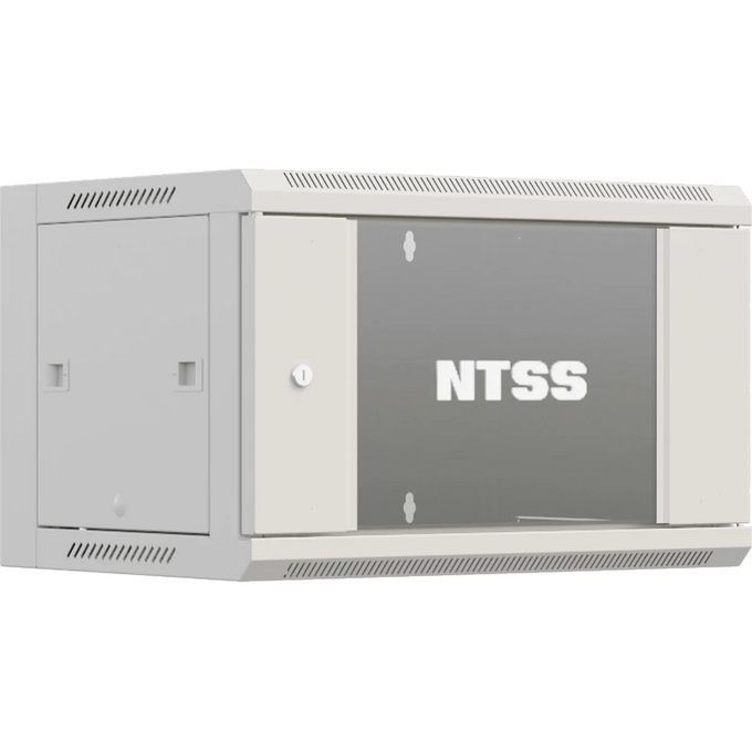 Разобранный настенный шкаф NTSS серии «W» с передней дверью, открываемыми боковыми стенками на защелках, задней стенкой и панелями пола и потолка. В комплекте 1 пара 19” профилей, уголки для поддержки оборудования. Дверь со стеклянной вставкой тонированного стекла делает шкаф более привлекательным. 18U – максимальная размер для шкафов серии W, может сделать размещение оборудование для рабочей группы весьма комфортным, разумеется, исключая профессиональное серверное и другое глубокое и тяжелое оборудование. Настенные шкафы такой высоты чаще рассматриваются как альтернатива небольшим напольным решениям в случае невозможности выделения пространства пола помещения для них. Глубина 600мм подходит для большинства задач, решаемых настенными шкафами для простого размещения коммутаторов, кроссов, но и небольших ИБП и другого активного оборудования.