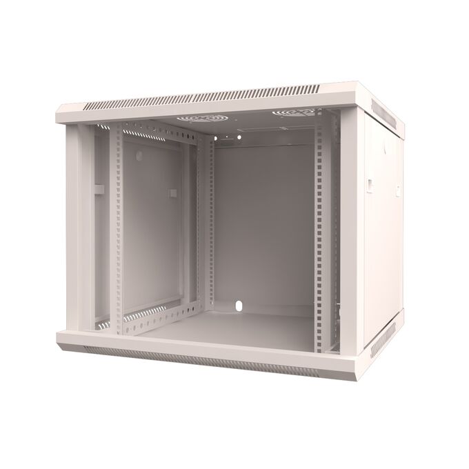 Боковые стенки шкафа съемные, что делает процесс монтажа и обслуживания технических средств более удобным и простым. Металлическая задняя стенка повышает прочность и надежность конструкции, а также создает дополнительную защиту от пыли.