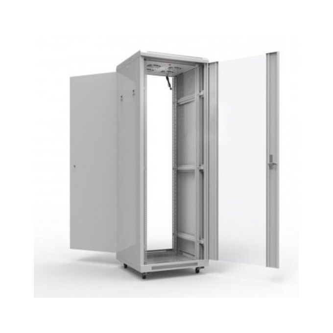 Напольный шкаф 19" 32U 600?600?1609 (ШxГxВ), дверь стекло, металлическая задняя дверь, боковые съемные стенки, RAL 7035 REXANT Напольный телекоммуникационный шкаф предназначен для хранения и организации сетевого и серверного оборудования. Обеспечивает надежную и безопасную среду для функционирования ценных технических устройств. Поставляется в разобранном виде. Компактное исполнение позволяет установить шкаф даже в ограниченных пространствах. Монтажный каркас состоит из прочных оцинкованных 19-дюймовых профилей, что гарантирует стабильность и долгий срок службы. Передняя дверь шкафа выполнена из ударопрочного тонированного стекла. Радиус открытия двери составляет 230 градусов, что предоставляет легкий доступ к устройствам и создает удобство при проведении работ. Дверцы могут быть установлены для открытия как в левую, так и в правую сторону. Боковые стенки шкафа съемные, что делает процесс монтажа и обслуживания технических средств более удобным и простым. Металлическая задняя дверь обеспечивает дополнительный доступ к оборудованию. В комплекте поставляется вентилятор. Номинальное напряжение: 220-240 В. Номинальный ток: 0,4 А. Частота: 50/60 Гц. Потребляемая мощность: 80 Вт.