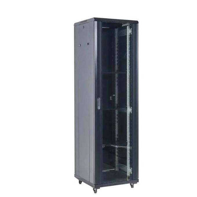Шкаф коммутационный Rexant 04-3266-212 напольный 32U 600x600мм пер.дв.стекл металл 2 бок.пан. направл.под винты 800кг черный 67кг 230град. 1609мм IP