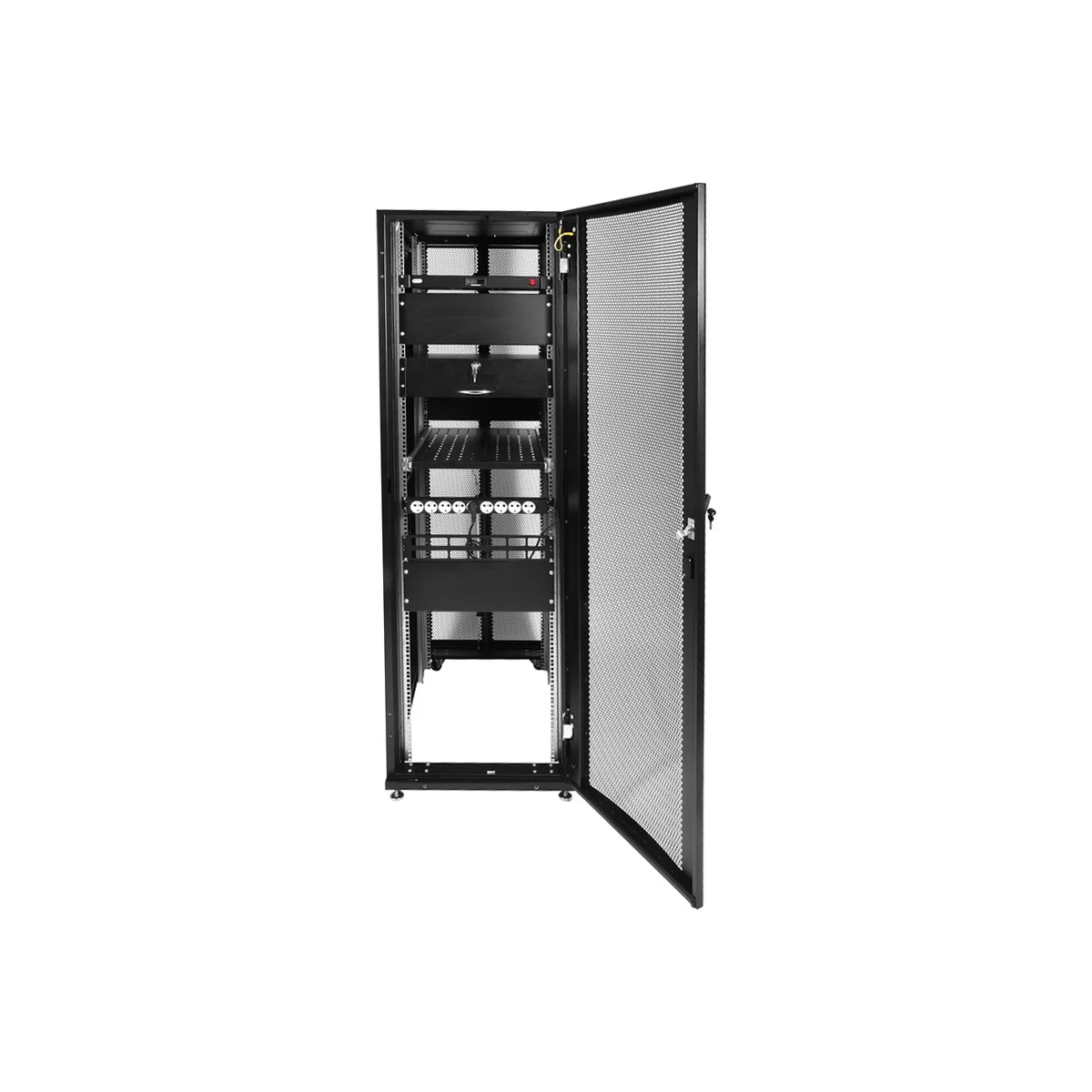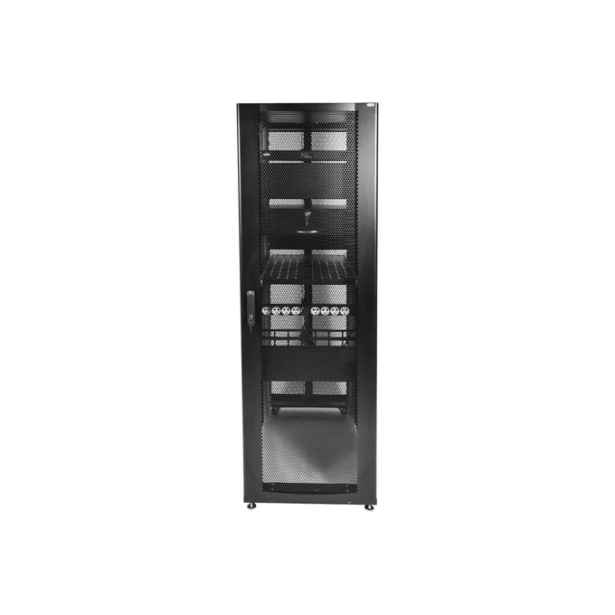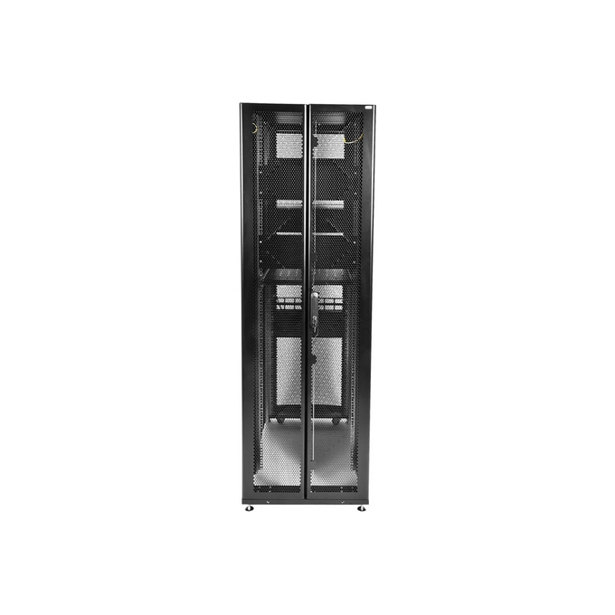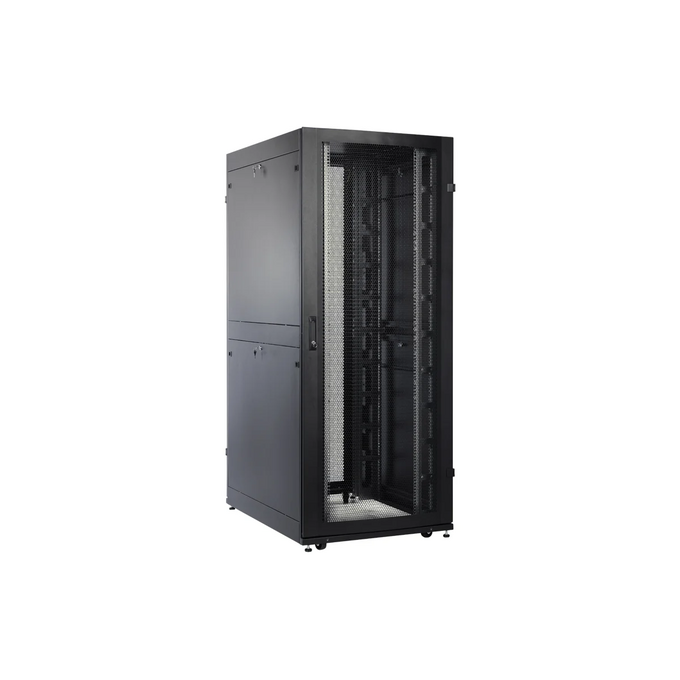 Шкаф серверный ЦМО (ШТК-СП-42.6.12-48АА-9005) напольный 42U 600x1190мм пер.дв.перфор. 2 бок.пан. задн.дв.перфор.2-хст. направл.под закл.гайки 1350кг ч