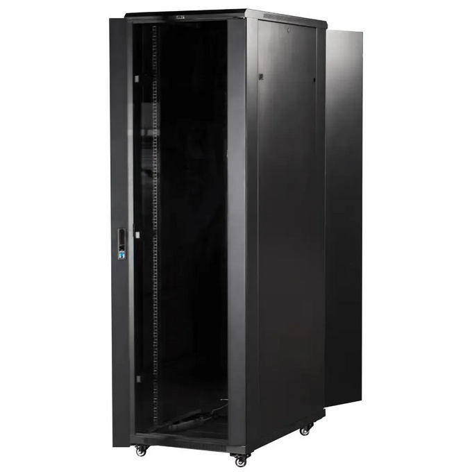 Шкаф серверный Lanmaster (TWT-CBB-22U-6X8-G1) напольный 22U 600x800мм пер.дв.стекл задн.дв.двуст. 2 бок.пан. 800кг черный IP20