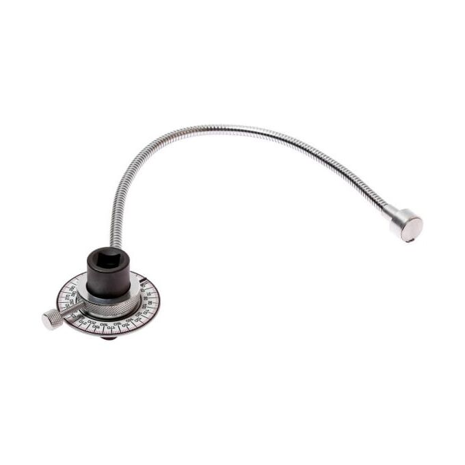 Доворотная шкала 1/2" 360град, длина 418мм, деление 2град. JTC-4613 используется для измерения угла доворота крепежа. Изделие имеет шкалу на 360 градусов. Цена деления - 2 градуса. Приспособление можно устанавливать и справа, и слева. Гибкая конструкция рукава позволяет использовать прибор на неровных поверхностях. На конце рукава располагается мощный магнит, который легко и надежно фиксирует изделие в любом удобном для мастера положении. Для работы со шкалой подходит ключ с посадочным квадратом 1/2 дюйма.
