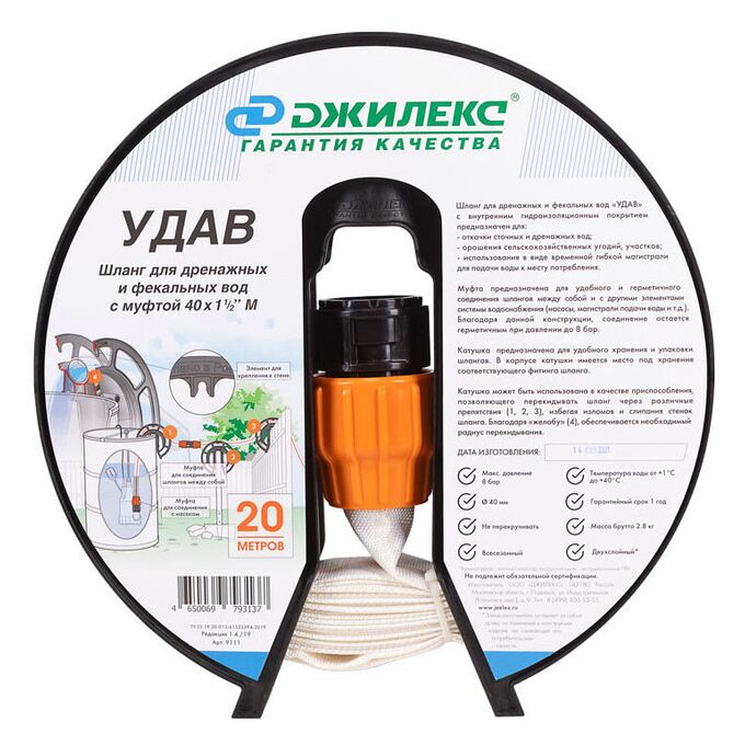 Шланг Джилекс Удав 1 1/2" 20м дренажный белый/оранжевый (9111)