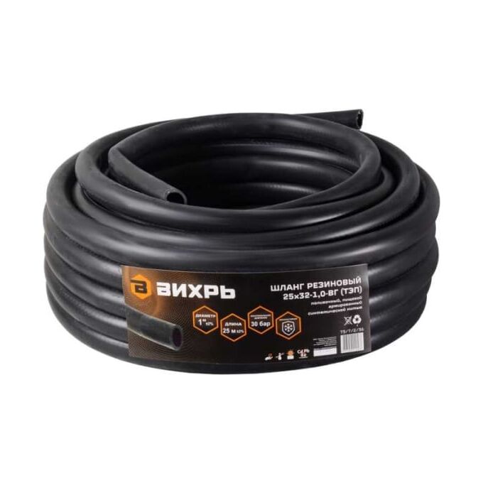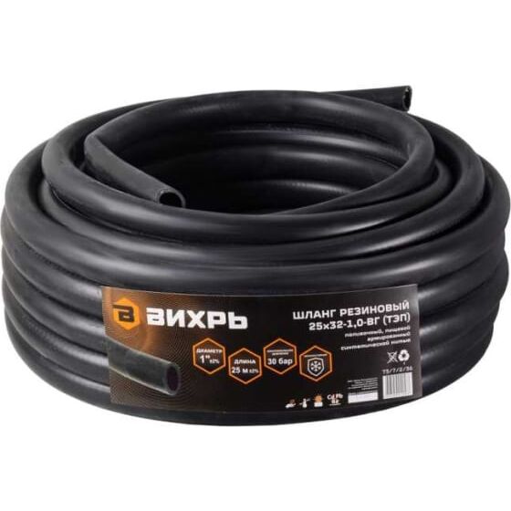 Шланг резиновый армированный Вихрь 73/7/2/36 25х32-1,0-ВГ., бухта 25м чёрный ТЭП