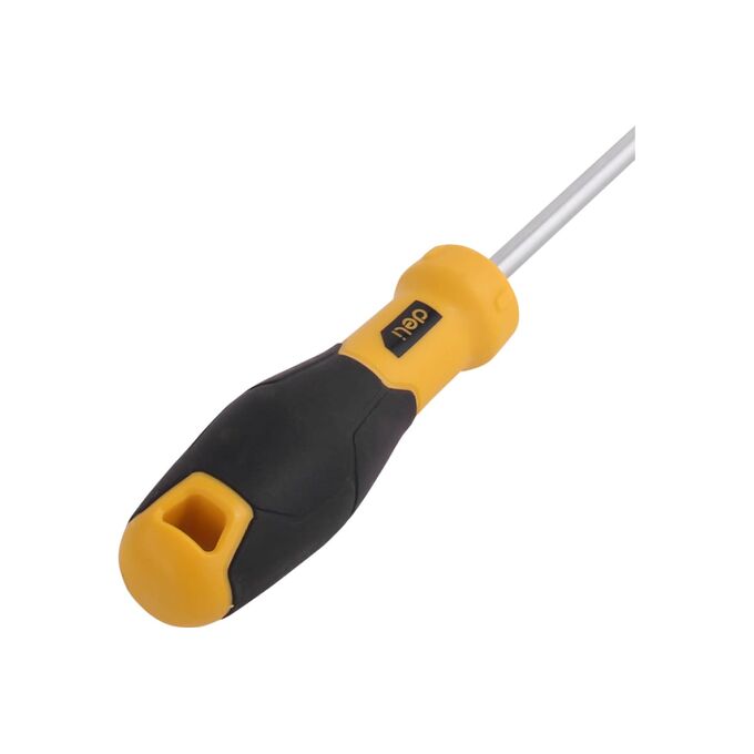 Шлицевая отвертка Deli DL6362001 6х200мм, материал: CR-V, двухкомпонентная ручка, хромированная