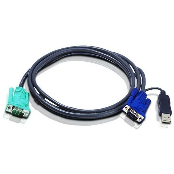 Шнур Aten 2L-5203U мон+клав+мышь USB SPHD15--HD DB15+USB A-Тип Male-2xMale 8+4 проводов опрессованный 3м черный