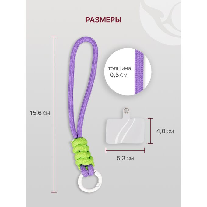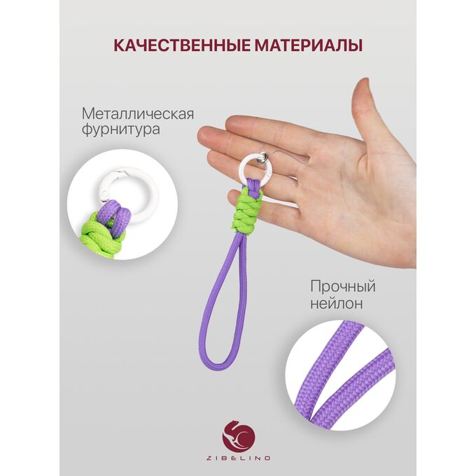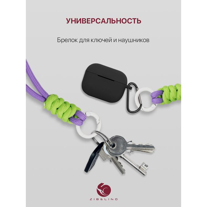 Шнурок универсальный для телефона, наушников и ключей на руку, с карабином, нейлоновый, салатово-сиреневый