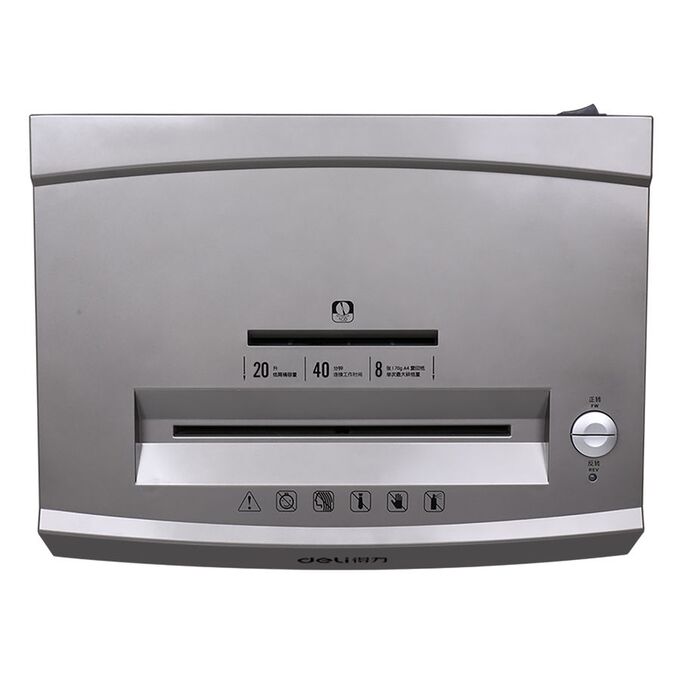 Шредер Deli 9907 серебристый с автоподачей (секр.P-4)/фрагменты/8лист./20лтр./скрепки/скобы/пл.карты/CD