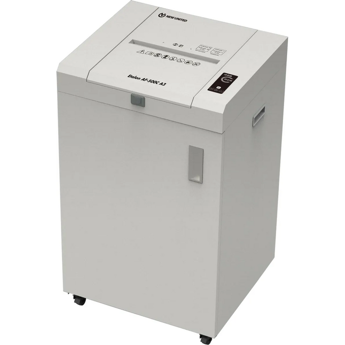 Шредер New United Etalon AF-500C A3 серый с автоподачей (секр.P-4) фрагменты 400лист. 140лтр. скрепки скобы пл.карты CD