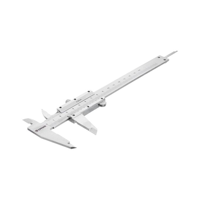 Штангенциркуль ЕРМАК 150мм, МТ001, ШЦ-I-150-0,1-1 660-073 используется для измерения толщины предмета, внешнего диаметра трубы или внутреннего диаметра отверстия с высокой точностью, а также его глубины.