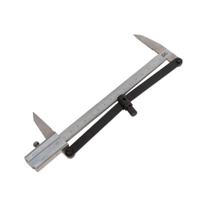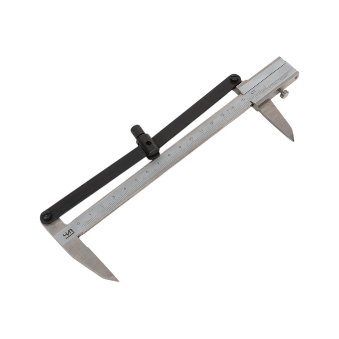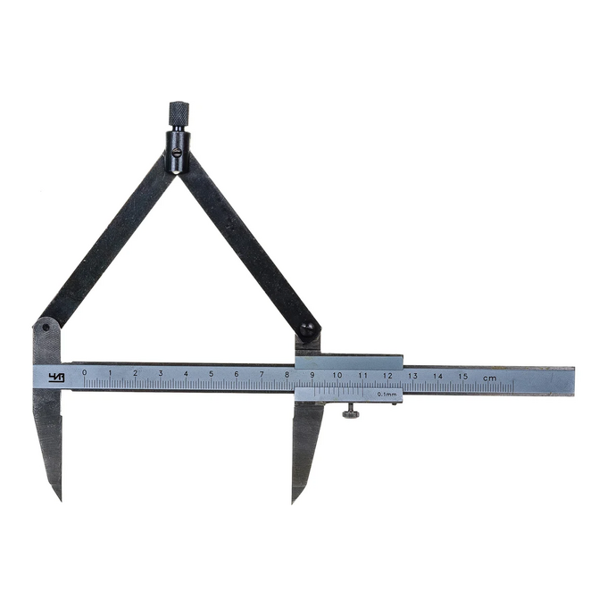 Основная особенность этого типа штангенциркулей – остро заточенные губки, которыми наносятся разметочные риски. Результаты измерений снимаются по шкале со штанги, которая показывает целые миллиметры и с нониуса, показывающего их доли. Материал изготовления - инструментальная сталь.