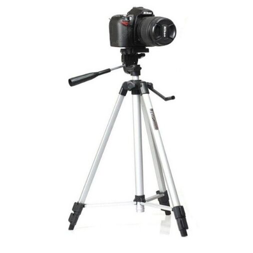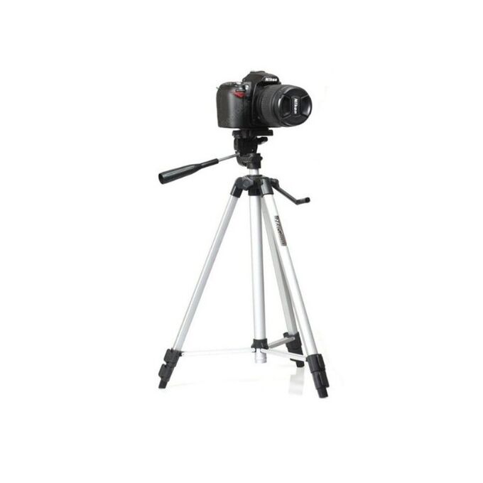 Штатив-тренога из алюминиевого сплава, раздвижной (с регулировкой высоты) от 50 до 135 см. Количество выдвижных секций ножек - 4. Максимальная нагрузка до 3 кг. В штатив встроен уровень, положение штативной головки регулируется при помощи ручки. Штативная головка вращается на 360 градусов.