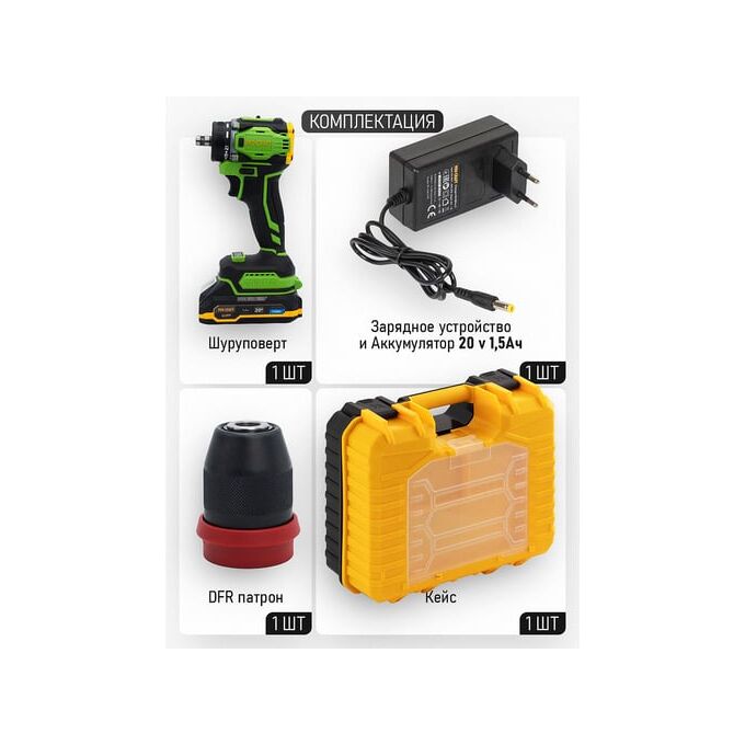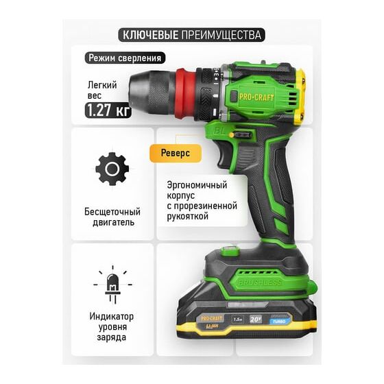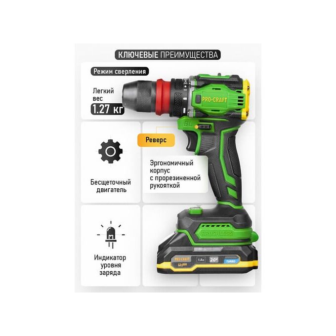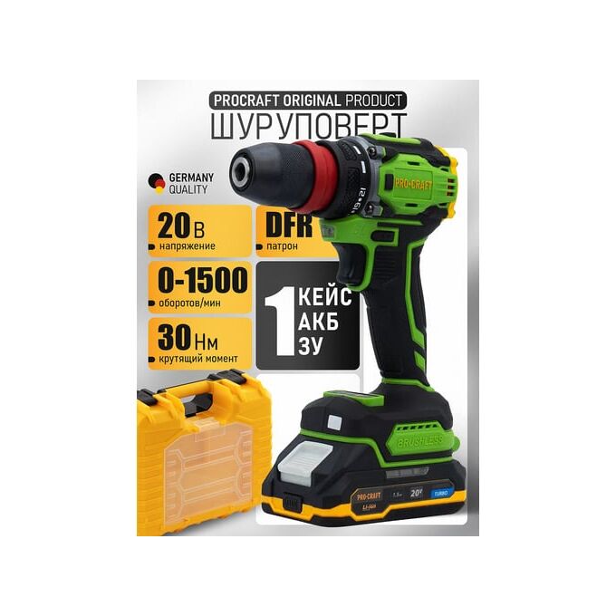 Шуруповерт PROCRAFT PA18Pro DFR (PA18Pro DRF-1b-c) 20В 30Нм (1 АКБ 1,5Ач+ЗУ+Кейс)