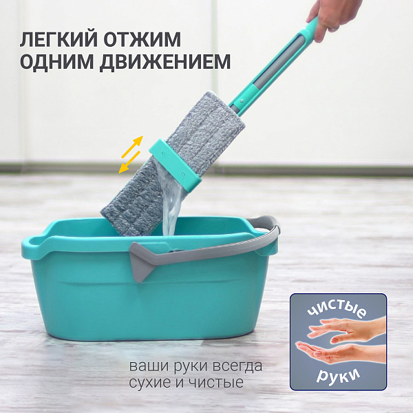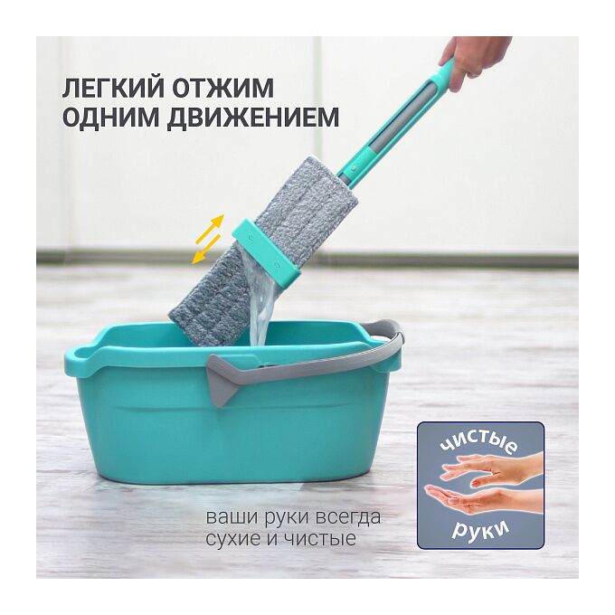 Швабра Easy Clean предназначена для влажной уборки любых видов напольных покрытий и относится к системе «чистые руки». Благодаря встроенному механизму отжима, уборка проходит на много быстрее и легче, а руки не страдают от моющих средств. Система «отжима» одним движением отжимает насадку, не повреждая ее и делая практически сухой! Швабра идеально подходит для уборки квартир до 100 кв.м. Мягкая ручка из вспененного пластика, удобная для захвата двумя руками, защищает руки от образования мозолей. Швабра Easy Clean модель HM-62 производится из ударопрочного ABS пластика. Равномерный прижим платформы к полу позволяет делать уборку без разводов. Насадка швабры из микрофибры обладает хорошей способностью впитывать и удерживать воду, легко отжимается, не впитывает запахи, прочно крепится к платформе швабры на липучки и выдерживает до 600 циклов уборки. Насадку можно стирать в стиральной машинке при температуре 60 градусов. После использования швабру можно хранить в вертикальном положении - система отжима в крайнем положении выполняет функцию опоры. На ручке швабры есть петля для подвеса на крючок, что также позволяет хранить ее компактно.