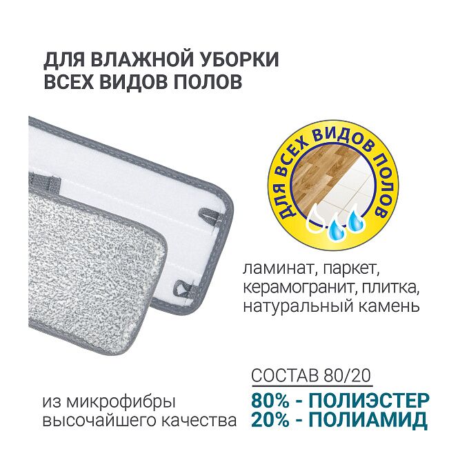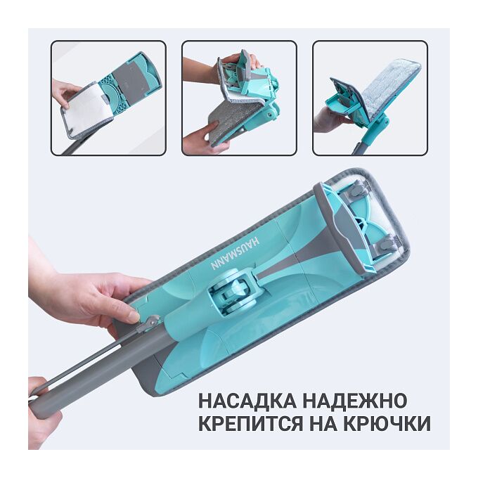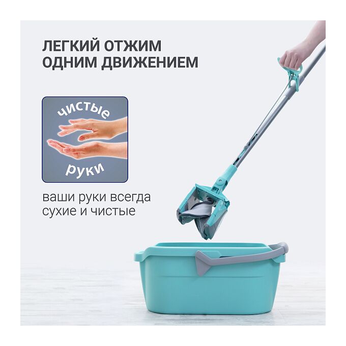 Швабра Care Clean с системой отжима предназначена для влажной уборки любых видов напольных покрытий и относится к системе «чистые руки». Идеально подходит для уборки квартир до 100 кв.м. Система «отжима» одним движением отжимает насадку, и ваши руки всегда остаются сухими и чистыми! Мягкая ручка для отжима из вспененного пластика, удобная для захвата двумя руками, защищает руки от образования мозолей. Платформа швабры легко вращается на 360 градусов, а равномерный прижим платформы к полу позволяет делать уборку без разводов. На торцах платформы имеются элементы из эластичного пластика, которые защищают мебель от повреждений и царапин в процессе уборки. Швабра Care Clean version 2.0 модель HM 67, производится из ударопрочного ABS пластика. Насадка швабры из микрофибры обладает хорошей способностью впитывать и удерживать воду, легко отжимается, не впитывает запахи, прочно крепится к платформе швабры на крючки, выдерживает до 600 циклов уборки. Насадку можно стирать в стиральной машинке при температуре 60 градусов. На ручке швабры есть петля для подвеса на крючок, что позволяет хранить ее компактно.