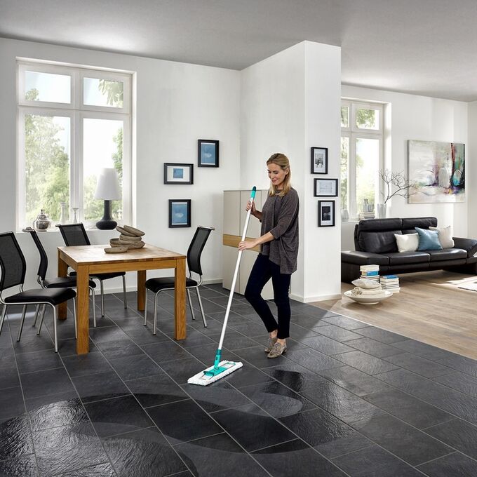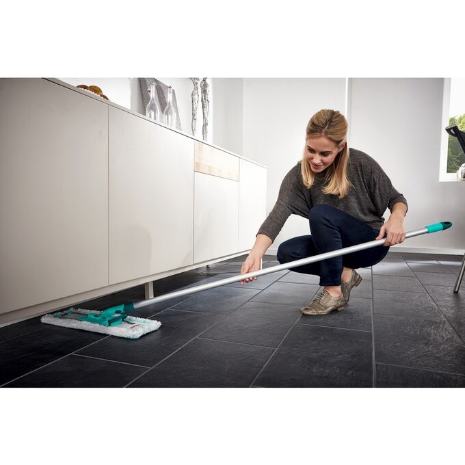 Швабра Profi Micro Duo Leifheit превосходно зарекомендовала себя при борьбе даже с наиболее сильными загрязнениями на полах большой площади. Одна из важных особенностей швабры – насадка «MicroDuo», изготовленная из микрофибры, волокна которой выполнены в двух уровнях высоты. Это неоднократно проверенное решение обеспечивает идеальную очистку мельчайших впадин и удаление даже стойких загрязнений. Рабочая поверхность имеет ширину 42 см, что позволяет заметно сократить время, затрачиваемое на уборку масштабных помещений.