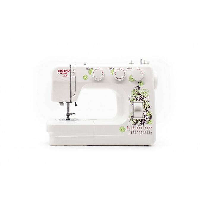 Швейная машина Janome Legend LE-30 с вертикальным качающимся челноком из серии Legend by Janome. При оформлении новой серии машин дизайнеры постарались отразить тонкий внутренний мир будущих рукодельниц. Швейные машины серии Legend by Janome отличаются высоким качеством сборки и использованием металлических деталей во всех основных узлах. Модель LE-30 предлагает широкий выбор строчек, среди которых прямые, зигзаги, эластичные, потайные, трикотажные, оверлочные и декоративные. Заправка машины достаточно проста благодаря пошаговым подсказкам на корпусе машины. Благодаря встроенному нитеобрезателю больше нет необходимости всегда держать ножницы под рукой. С помощью отдельных регулировок длины и ширины стежка можно получить именно такую строчку, какую Вы хотели! В модели LE-30 петля выметывается автоматически за один прием, без необходимости поворота ткани. Для удобства шитья узких и круговых изделий имеется съемная рукавная платформа, внутри которой предусмотрен ящик для хранения лапок и других швейных аксессуаров.