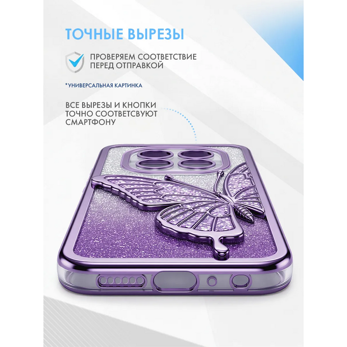 Чехол-бабочка с блестками объединяет поколения! Девочкам нравится за игру света, женщинам за элегантность, старшему поколению – за удобство и стильный дизайн.