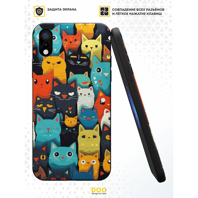 Силиконовый чехол DesignOnCase для Apple iPhone XR / на Айфон ХР, Разноцветные коты