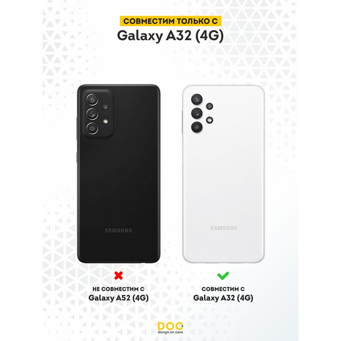 Чехол для смартфона Galaxy A32 - неотъемлемый аксессуар каждого современного человека. Премиальные износостойкие краски и лаки, качественные материалы изделия, японское оборудование и контроль качества производства - это то, что позволяет нам выгодно выделяться среди конкурентов и производить не только красивые, но тактильно приятные чехлы для Самсунг А32, которые долгое время не теряют первоначального вида.