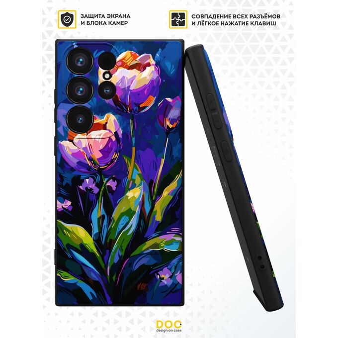 Силиконовый чехол DesignOnCase для Galaxy S23 Ultra (Галакси С23 Ультра), Цветы акварель v.2