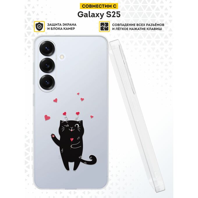 Силиконовый чехол DesignOnCase для Galaxy S25 (Галакси С25), Романтичный кот
