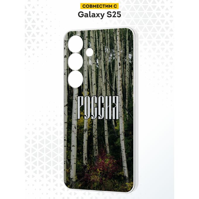 Силиконовый чехол DesignOnCase для Galaxy S25 (Галакси С25), Россия и берёзы