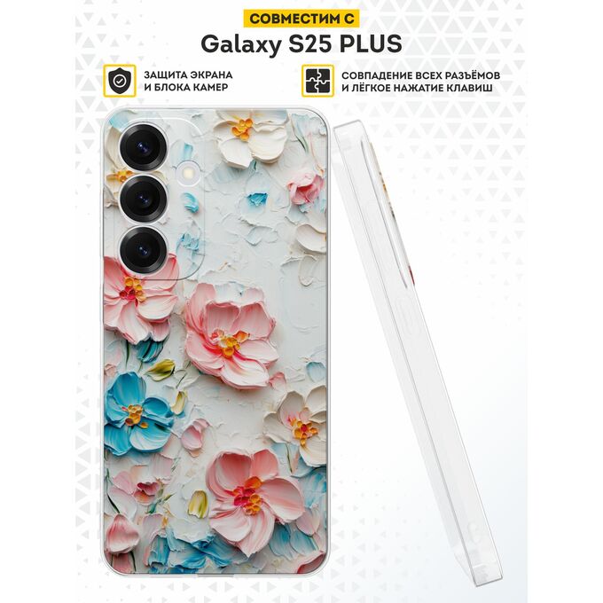 Силиконовый чехол DesignOnCase для Galaxy S25 Plus (Галакси С25 Плюс), Цветы маслом
