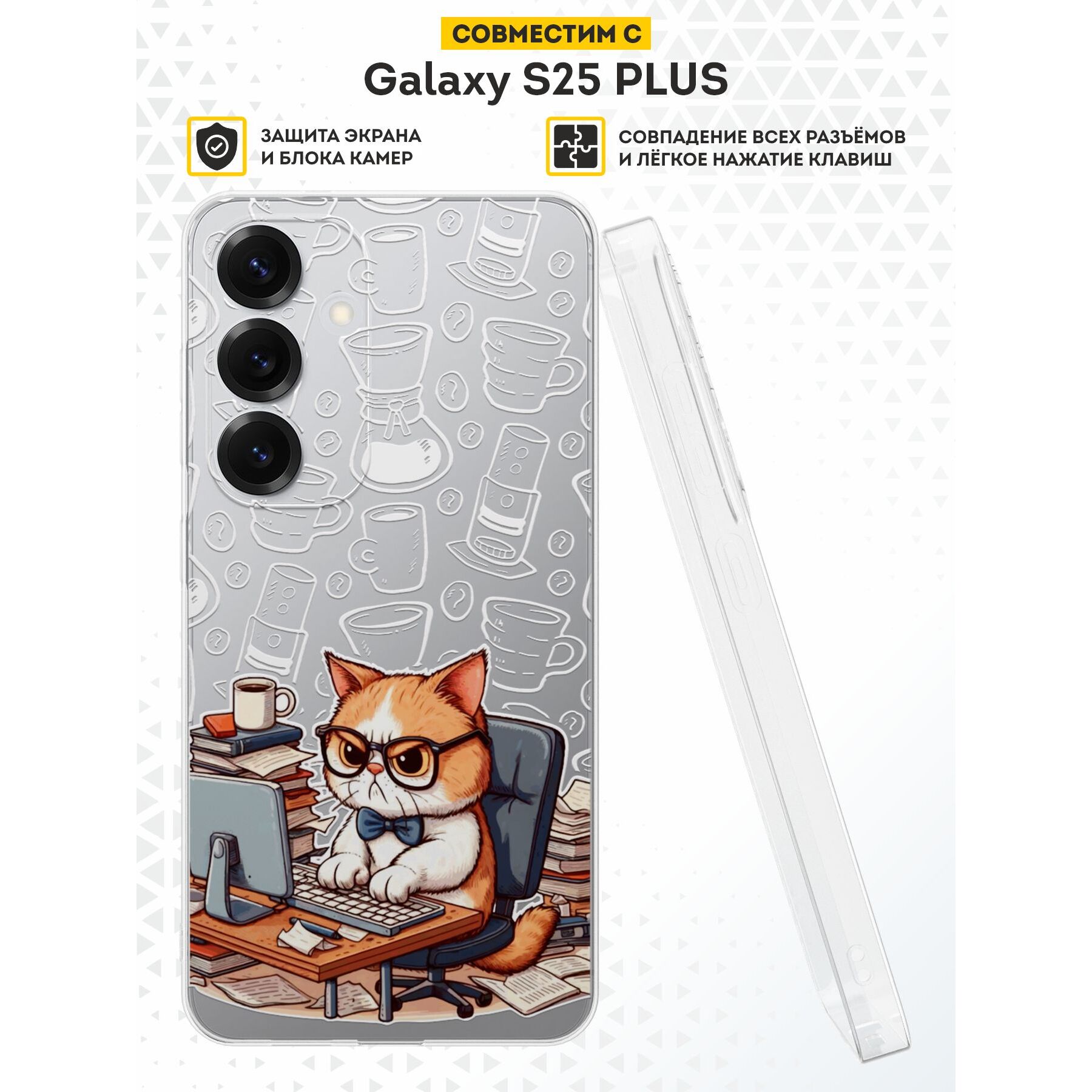 Силиконовый чехол DesignOnCase для Galaxy S25 Plus (Галакси С25 Плюс), Кот работяга