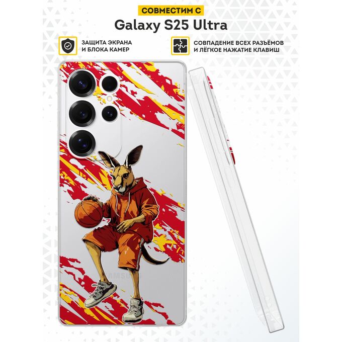 Силиконовый чехол DesignOnCase для Galaxy S25 Ultra (Галакси С25 Ультра), Кенгуру баскетболист