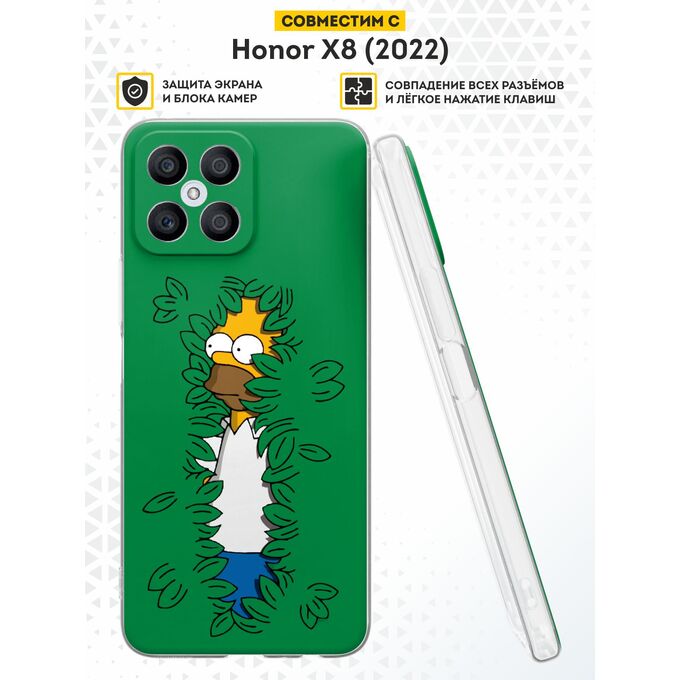 Силиконовый чехол DesignOnCase для Honor X8 (Хонор Х8), Гомер в кустах