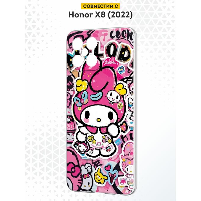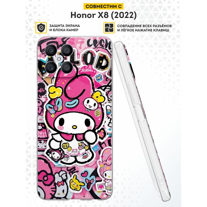 Силиконовый чехол DesignOnCase для Honor X8 (Хонор Х8), Китти коллаж