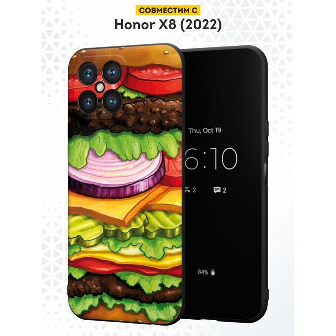 Силиконовый чехол DesignOnCase для Honor X8 (Хонор Х8), Крабсбургер