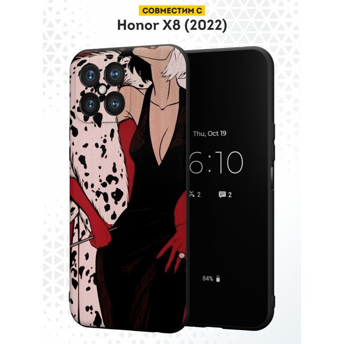 Силиконовый чехол DesignOnCase для Honor X8 (Хонор Х8), Круэлла