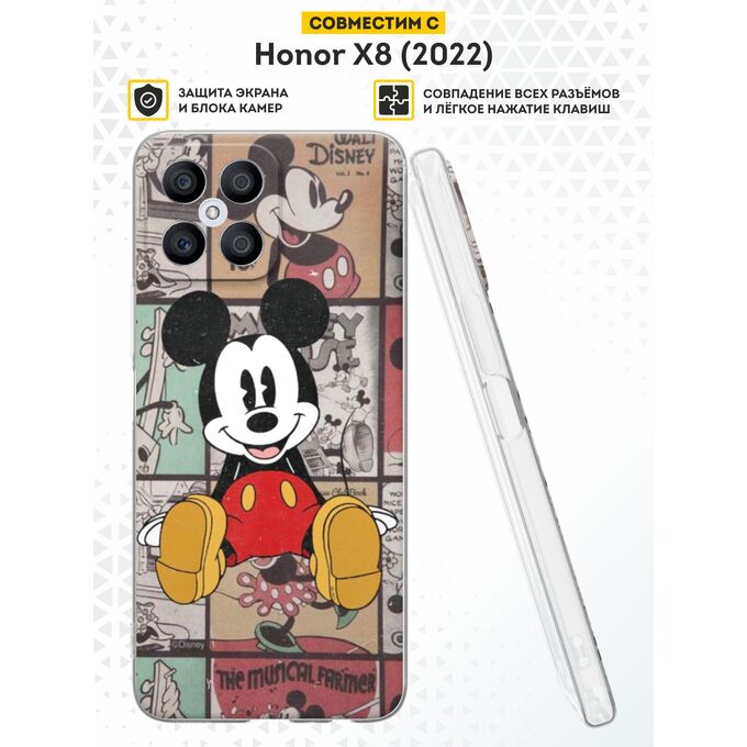 Силиконовый чехол DesignOnCase для Honor X8 (Хонор Х8), Микки дисней