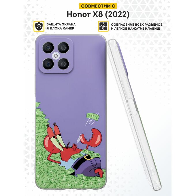 Силиконовый чехол DesignOnCase для Honor X8 (Хонор Х8), Мистер Крабс