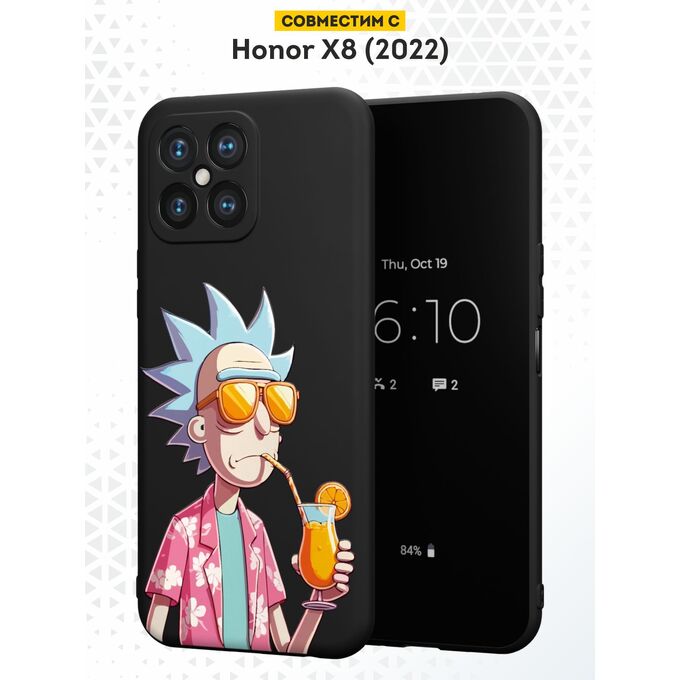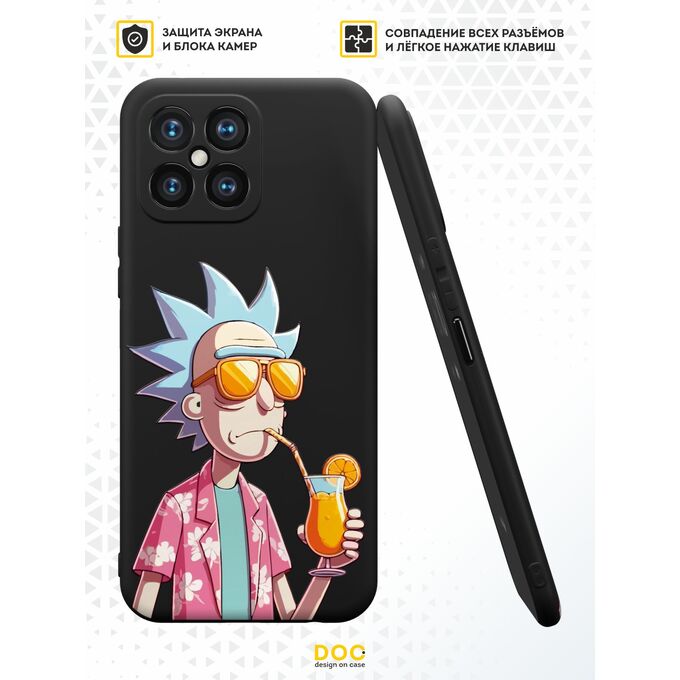 Силиконовый чехол DesignOnCase для Honor X8 (Хонор Х8), Рик и коктейль