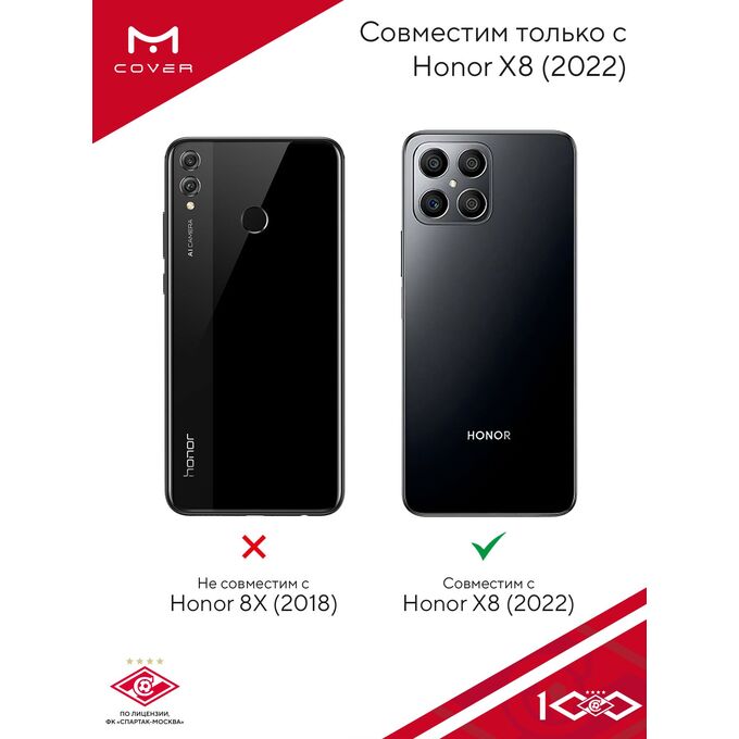 Силиконовый чехол DesignOnCase для Honor X8 (Хонор Х8), Российский футбольный клуб Спартак