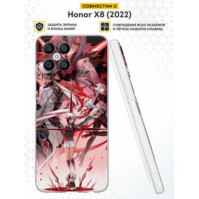 Силиконовый чехол DesignOnCase для Honor X8 (Хонор Х8), с принтом Arlecchino genshin