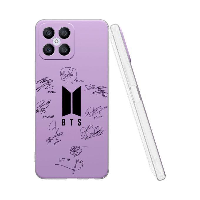 Силиконовый чехол DesignOnCase для Honor X8 (Хонор Х8), с принтом Автографы БТС