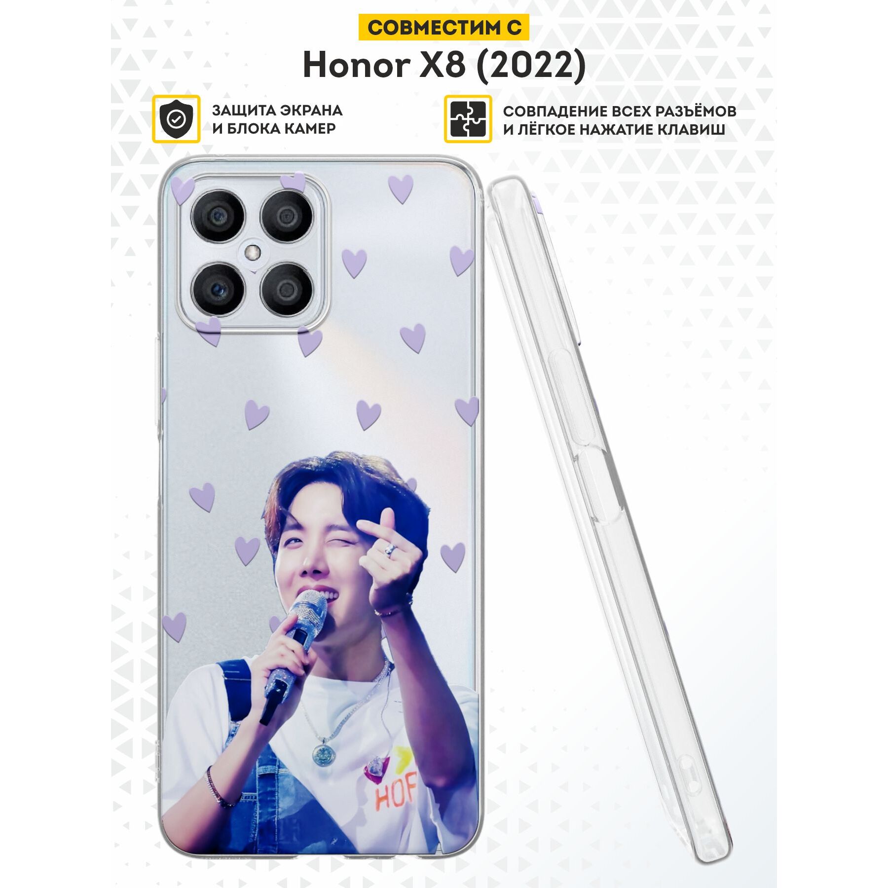 Силиконовый чехол DesignOnCase для Honor X8 (Хонор Х8), с принтом J-Hope