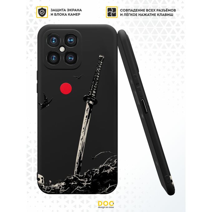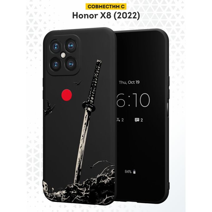 Силиконовый чехол DesignOnCase для Honor X8 (Хонор Х8), с принтом Катана и луна