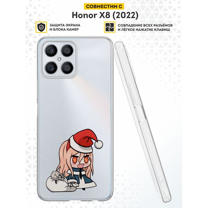 Силиконовый чехол DesignOnCase для Honor X8 (Хонор Х8), с принтом Новогодний, Человек-бензопила, Аниме, Пауэр