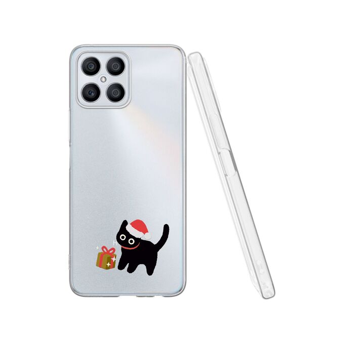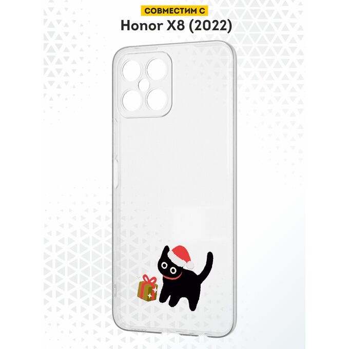 Силиконовый чехол DesignOnCase для Honor X8 (Хонор Х8), с принтом Новогодний, Черный кот, Подарок